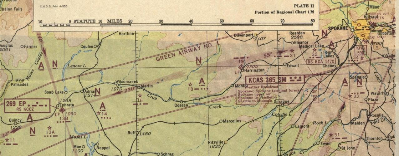 NW US. Radio Range stations in Ephrata and Spokane defined this portion. See