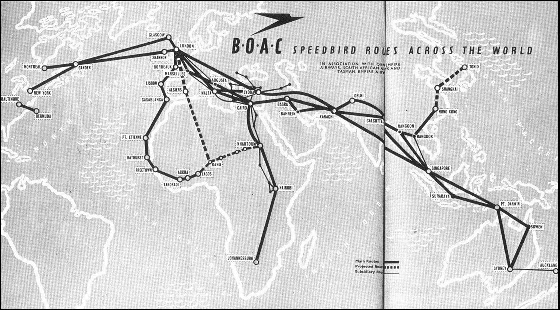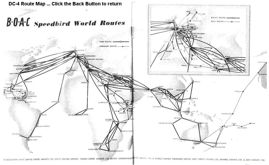The DC-4 flights are based on the 1954 BOAC Route structure. In addition to