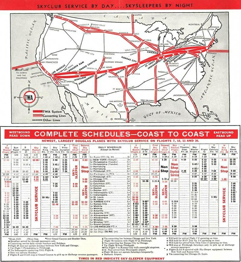 It was an exciting time in commercial aviation and TWA's Route Map shows their emphasis on transcontinental flight. Jay Schneider, DCA-523, has captured the essence of those times by reconstructing all 112 flights in the 1937 TWA timetable.