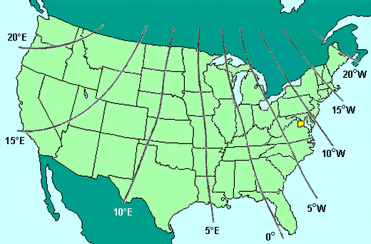 The map below shows the variation in the U.S. between a compass reading and true north.