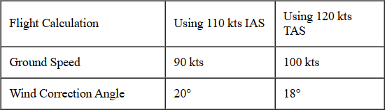 Similarly, since there is no wind, the Ground Speed (GS) will be the same as the TAS, or 110 kts.