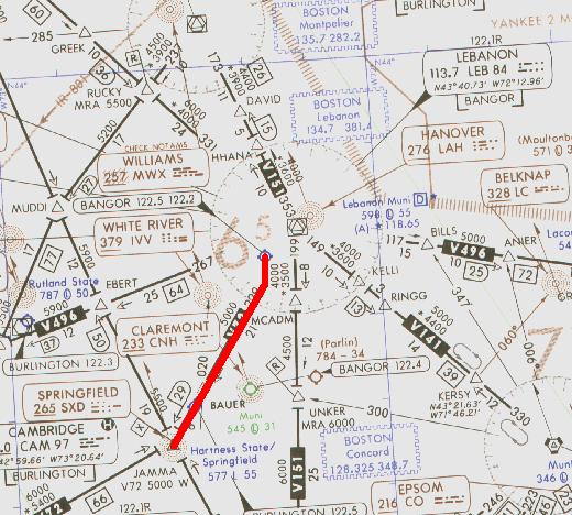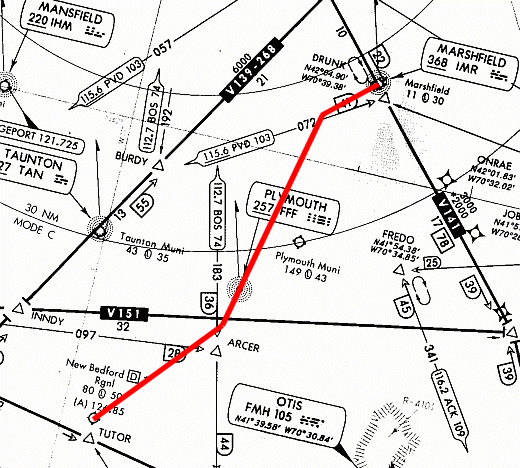 Click on the image above to download the flight-information package, 3b2-ebw.zip. That zip-file includes the IFR chart, the approach plate for LOC-BC Rwy 23 at New Bedford, and this text description of the flight.