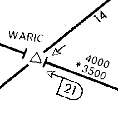 The "14" in the upper right designates the 14 nm. distance between WARIC and the Keene VOR. The *3500 denotes the minimum obstruction clearance altitude, MOCA, and the 4000 denotes the minimum en route altitude, MEA.