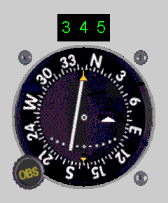 Same example as before. The aircraft is south of the Omni, on the 165° radial. It is flying northwest. Observe the DG. The aircraft is heading 345° as desired. But the OBS was improperly set to 165° and the VOR is falsely informing the pilot, with a nicely centered needle, that he/she is flying away FROM the Omni. The aircraft, of course, is flying TO the Omni. Hate to beat a dead horse, but again, the TO-FROM confusion disappears if the aircraft heading and the OBS setting are approximately the same which they weren't here. Pay attention to this and you will stay out of trouble. This sort of error usually happens when the pilot rotates the OBS, watching only for a centered needle, not also paying attention that the setting should approximate the magnetic course, or aircraft heading.