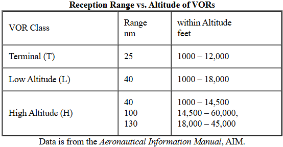 These ranges assume, please contain your laughter, that terrain plays no part in VOR ranges of reception. But terrain, of course, can greatly impact the reliable range of an Omni.
